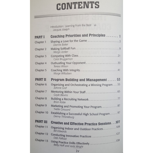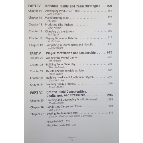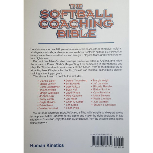 Now, for the first time in the sport of fastpitch softball, you can learn from successful coaches and apply their approaches to your own program. In The Softball Coaching Bible, 28 of the top U.S. coaches share their principles, insights, strategies, methods, and experiences to help you enhance the experience and development of your own athletes. Developed in cooperation with the National Fastpitch Coaches Association (NFCA), The Softball Coaching Bible was written by the greatest assembly of college and high school softball coaches ever. The text provides the finer points of coaching softball, presented in an engaging manner that makes the contents easy to apply to your own ball club. The topics range from teaching the best skills and drills to subjects rarely written about, such as developing responsible athletes and building character and loyalty in players. Find out how Mike Candrea develops productive hitters at the University of Arizona, and follow the advice of Fresno State University's Margie Wright for competing in tournaments and playoffs. This landmark work covers all the bases, from recruiting players to attracting fans. The Softball Coaching Bible also contains information on professional development: moving through the coaching ranks, making use of other coaches and professional organizations, avoiding coaching burnout, and attending and running camps and clinics. Chapter after chapter, this book provides the game plan for building a winning program. The Softball Coaching Bible is filled with insights and expert advice to help you learn and grow. Soak it up, enjoy the stories, and discover the wisdom of the sport's finest mentors.