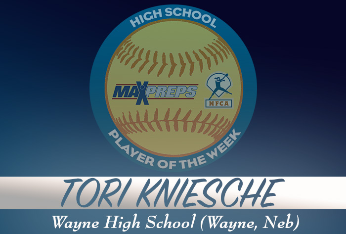 LOUISVILLE, Ky. – Tori Kniesche of Wayne (Neb.) High School was named MaxPreps/NFCA National High School Player of the Week for her outstanding play during the week of Aug.13-19.