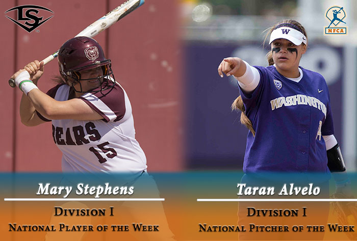 LOUISVILLE, Ky. – Missouri State slugger Mary Stephen and Washington hurler Taran Alvelo were named the Louisville/Slugger NFCA Division I National Player and Pitcher of the Week, respectively, for their play during the first week of the season on Tuesday afternoon.