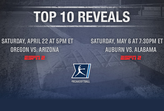 The Division I Softball Committee will reveal two top ten rankings during upcoming games on ESPN2.