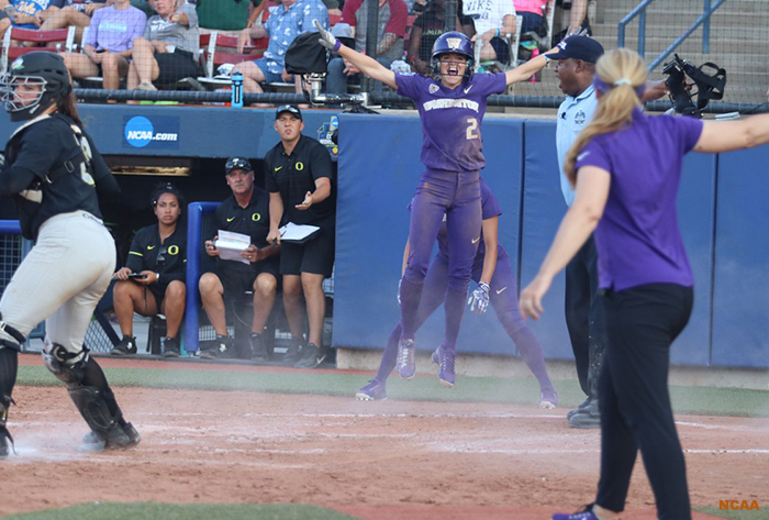 OKLAHOMA CITY – In front of 9,311 fans, No. 5 Washington and No. 3 UCLA earned their spots in the semifinals of the 2018 Women’s College World Series after an exciting day two at ASA Hall of Fame Stadium.