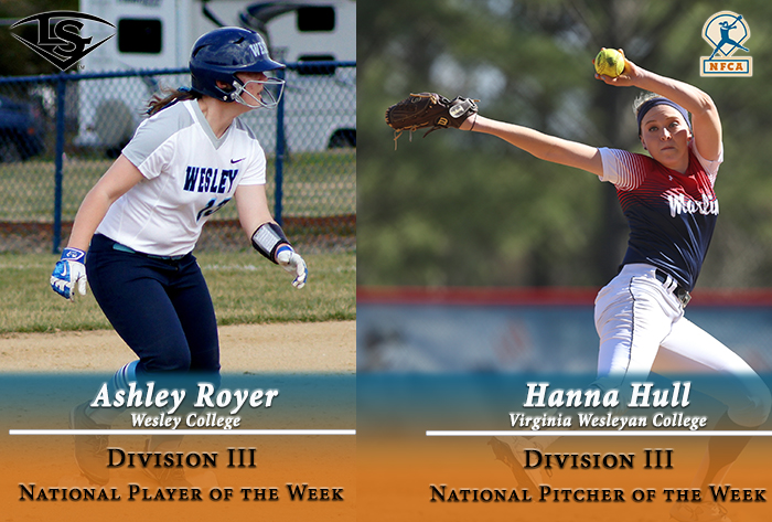 LOUISVILLE, Ky. — Virginia Wesleyan’s Hanna Hull and Wesley’s Ashley Royer captured this week’s Louisville Slugger/NFCA Division III National Pitcher and Player of the Week honors, respectively.