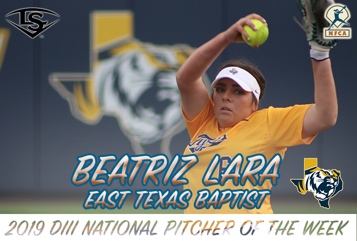 LOUISVILLE, Ky. — East Texas Baptist University’s Beatriz Lara and the University of St. Thomas’ Chase Shortly captured the first Louisville Slugger/NFCA Division III National Pitcher and Player of the Week honors of the season, respectively, on Wednesday.