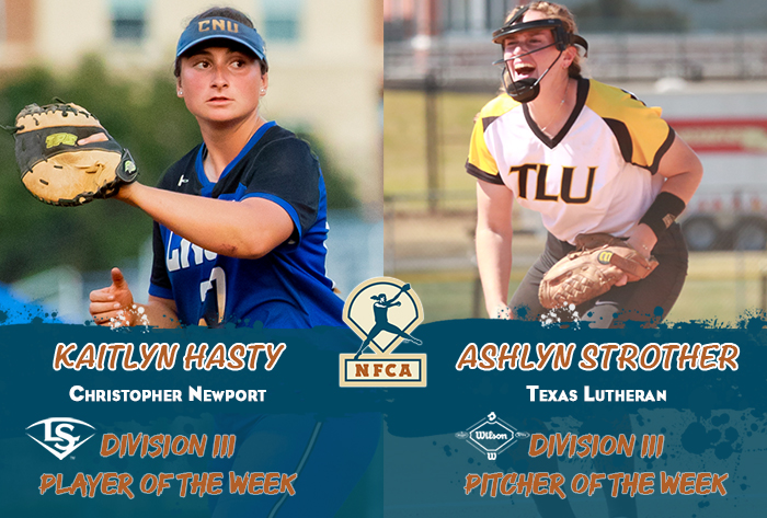 NCAA III News Hasty, Strother claim Louisville Slugger/Wilson NFCA Division III weekly honors Published 15 March 2022 LOUISVILLE, Ky. — Christopher Newport’s Kaitlyn Hasty and Texas Lutheran’s Ashlyn Strother captured the latest Division III... Read more ...