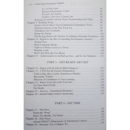 Leaders have clarity of vision, lead by example, connect with empathy, and take action to make their teammates better. They also have thinking patterns that we can study and imitate. This book helps athletes more quickly get what they want from softball with great content and detailed mental training exercises. It's a great book study for a team's off-season mental conditioning. Foreword by Mike Candrea.